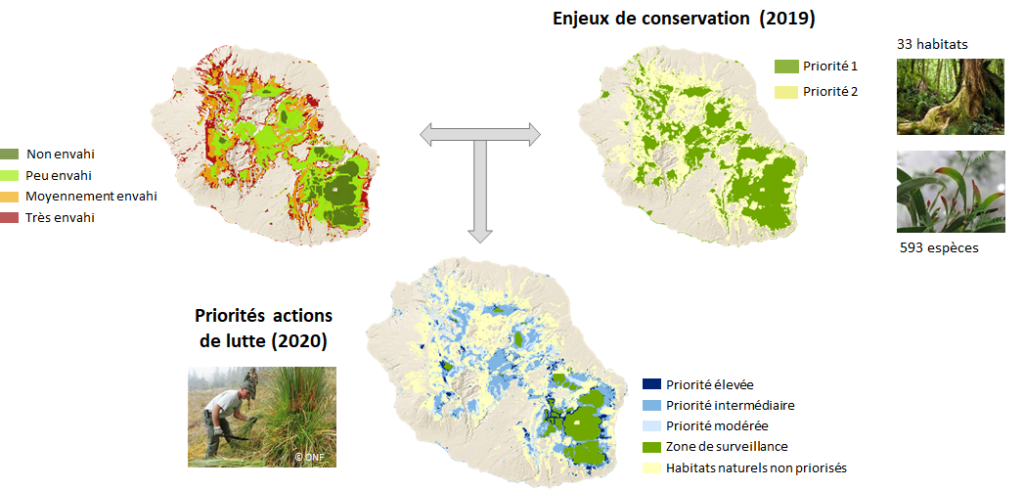 La flore indigène de La Réunion est composée de plus de 1 000 espèces dont près de 30 % sont endémiques. Cette richesse de biodiversité est cependant menacée par les effets du changement climatique, mais aussi la dégradation des sols en lien avec leur artificialisation et les ravinements qui s’ensuivent. L’eau des fortes pluies qui dévale les pentes, entraine dans sa course la colonisation par une flore exotique envahissante.